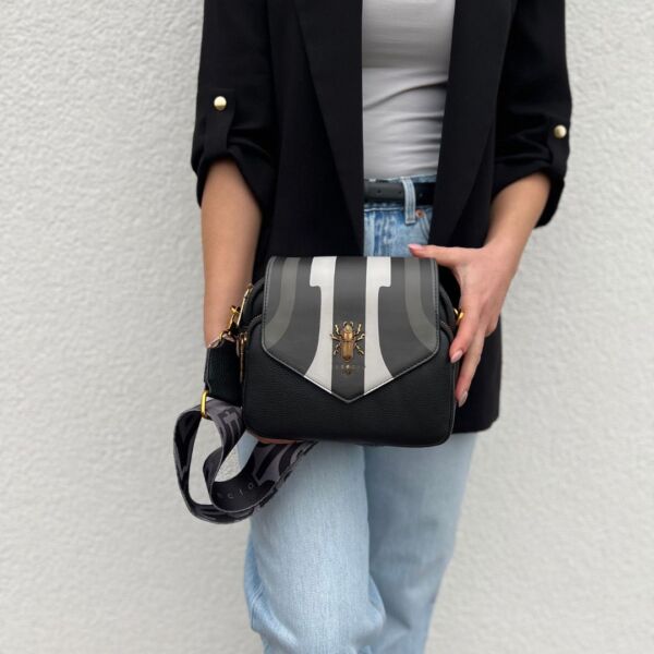 Izjemna kakovost eko usnja in precizna izdelava se zlijeta v torbico, ki navduši že na prvi pogled. Notranjost je ravno prav prostorna, da shraniš vse, kar ti pomeni – in hkrati ostaneš elegantna in lahkotna. Preklopa – eden z minimalističnim znakom, drugi z umetniškim potiskom – ti omogočata popolno prilagoditev trenutnemu razpoloženju ali outfitu. Lahko pa jo nosiš kar brez preklopa – preprosto in svobodno. Kupuješ nekaj več kot torbico – kupuješ občutek izražanja.
